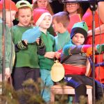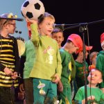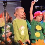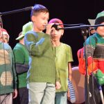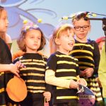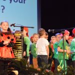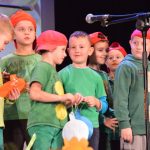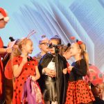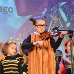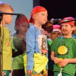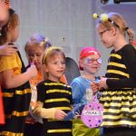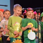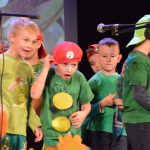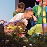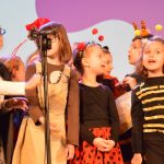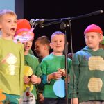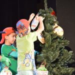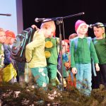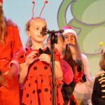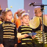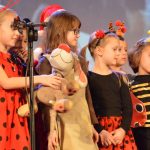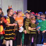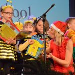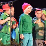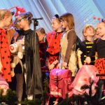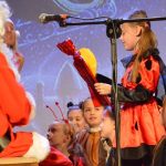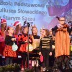Na scenie wykreowano prawdziwą łąkę, na której pojawiły się biedronki, pszczółki, gąsienice, świetliki i chrząszcze. O grudniowej aurze i zbliżającym się świętym Mikołaju przypominały jedynie choinki i jodłowe gałązki, oraz magiczne dźwięki Jingle Bells płynące ze skrzypiec, którymi Emilka Nalepa z klasy 1a zaczarowała wielobarwną łąkę, dzięki czemu przenieśliśmy się w zimową krainę, czyli Winter Wonderland.