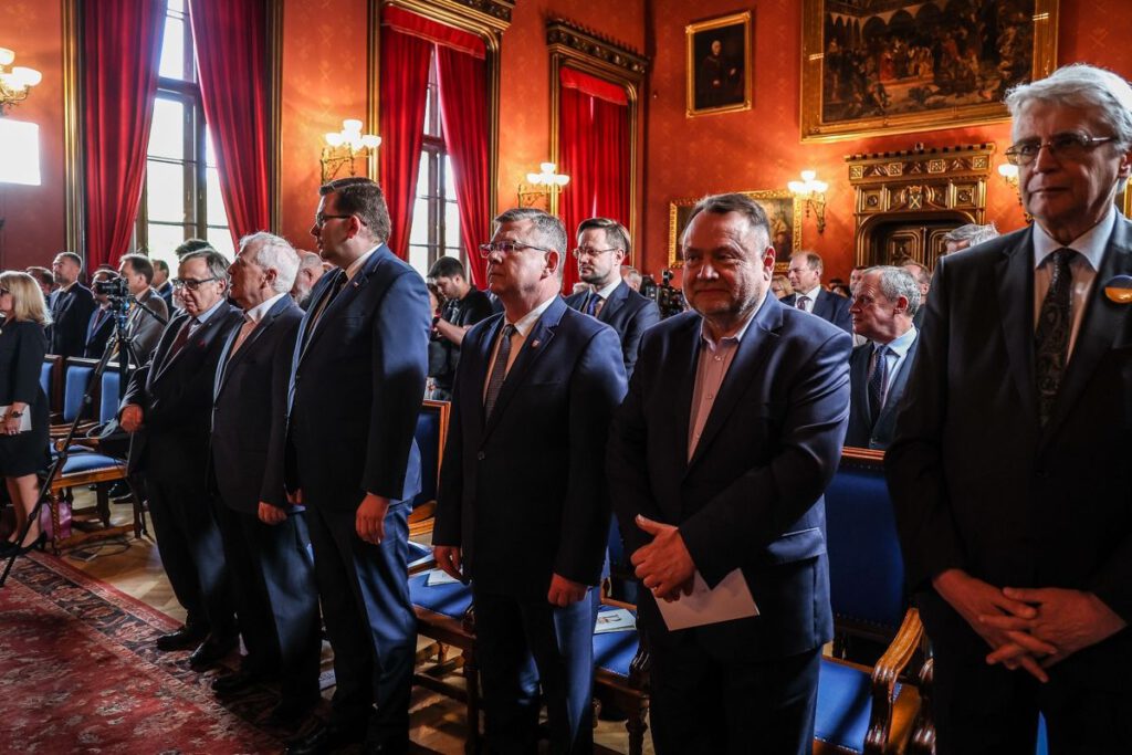 W dniu obchodów Święta Uniwersytetu Jagiellońskiego pragnę w imieniu własnym i Samorządu Województwa Małopolskiego przekazać całej uniwersyteckiej wspólnocie słowa gratulacji oraz życzeń – aby nieustannie czerpiąc z bogatego dziedzictwa przeszłości, uczelnia wzmacniała i rozwijała swoją kluczową pozycję, jako ośrodka naukowego i edukacyjnego naszego kraju. Chcę dzisiaj podziękować Panu Rektorowi, profesorowi Jackowi Popielowi za obecność zarówno Pana Rektora osobiście, jak i Uniwersytetu Jagiellońskiego, w pracach Rady Naukowej ds. Strategicznych Kierunków Rozwoju Małopolski. Mam nadzieję, że nasza współpraca w ramach Rady będzie nabierać dynamizmu ‒ z korzyścią dla Małopolski i Małopolan