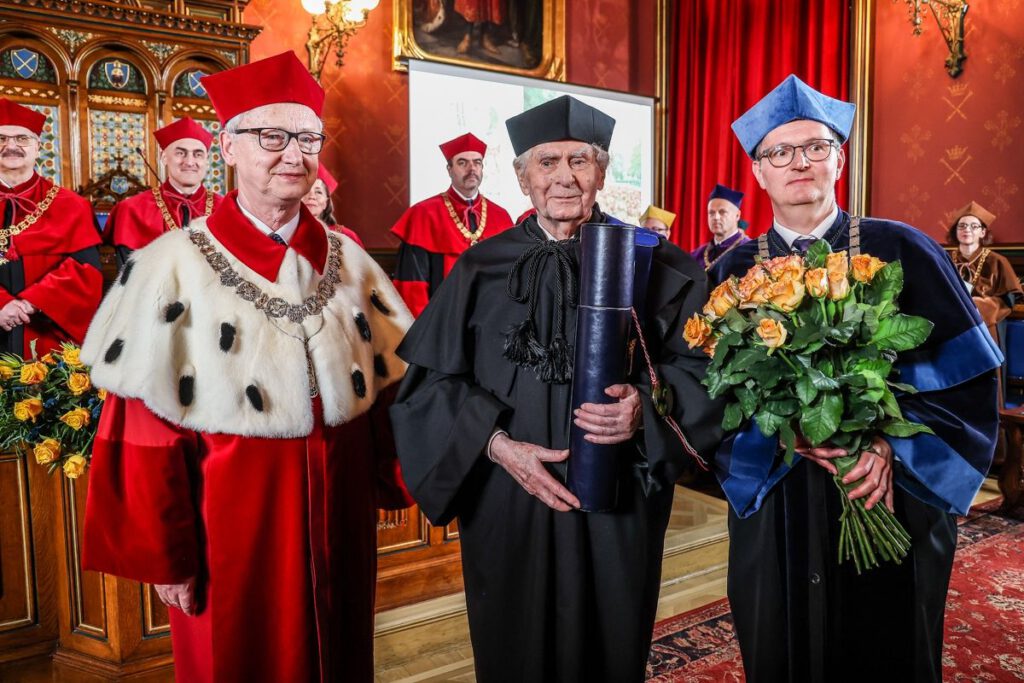 Obchody Święta Uniwersytetu Jagiellońskiego uświetnia wręczenie panu Wiesławowi Myśliwskiemu tytułu doktora honoris causa. Proszę czcigodnego gościa o przyjęcie moich słów najwyższego szacunku i podziękowania za Pańską bogatą i inspirującą twórczość, za to, że każdą swoją książką zachęca Pan swoich czytelników do refleksji nad nami samymi i nad światem, do tego, aby „znaleźć siebie”. Cieszę się, że mogę dzisiaj, w tym szczególnym dniu, osobiście złożyć Panu za to podziękowanie