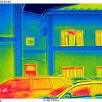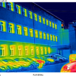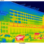 Jeszcze lepiej sytuacja wygląda na nowo wybudowanym basenie. Na termogramie możemy zaobserwować największą ucieczkę ciepła jedynie na łączeniu szyb. Natomiast możemy się także domyślać, który samochód zaparkował jako ostatni. Kamera termowizyjna pozwala także zlokalizować ogrzewanie podłogowe, oraz sprawdzić czy funkcjonuje ono w prawidłowy sposób.