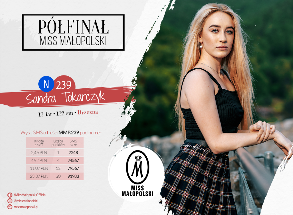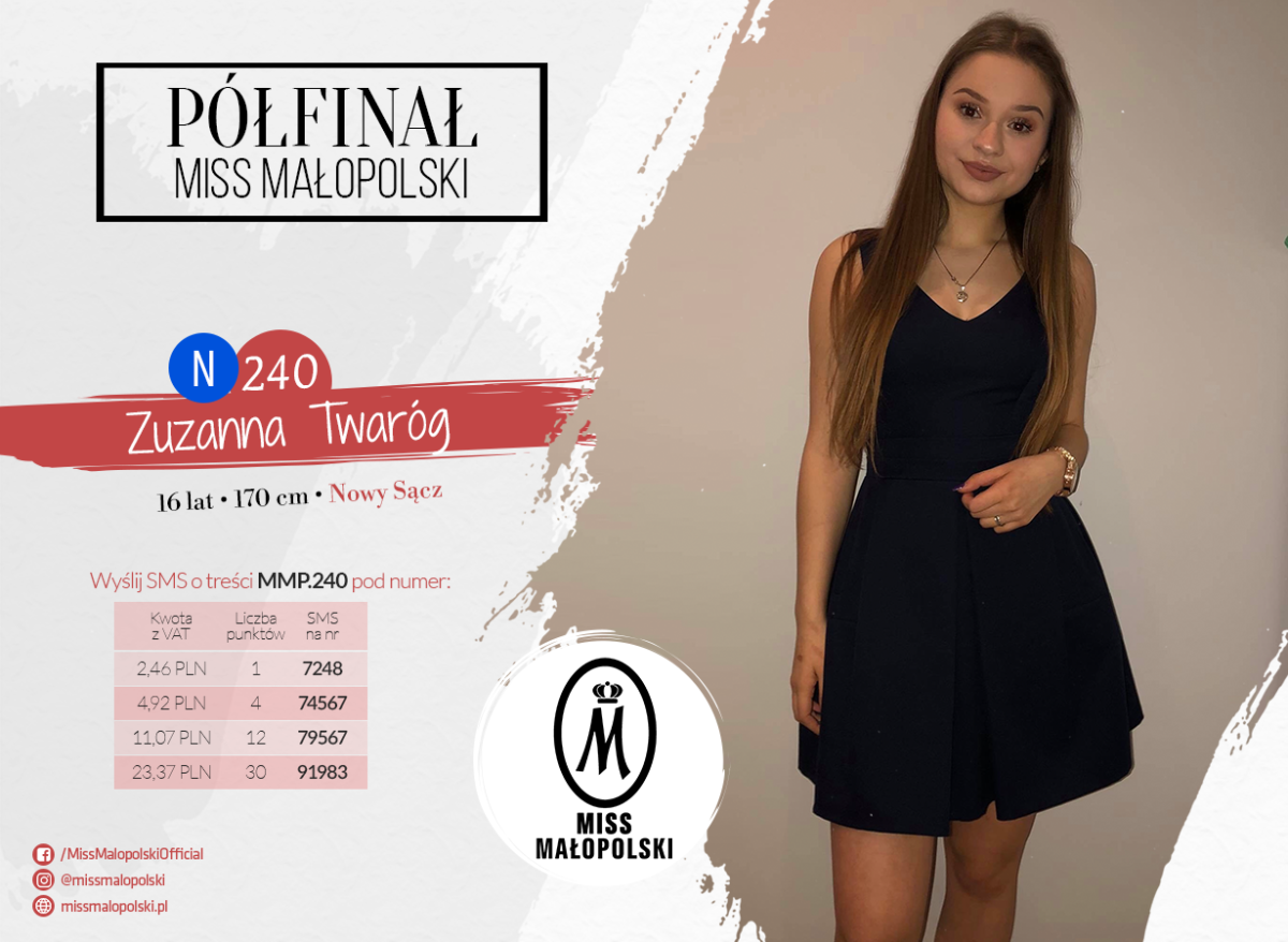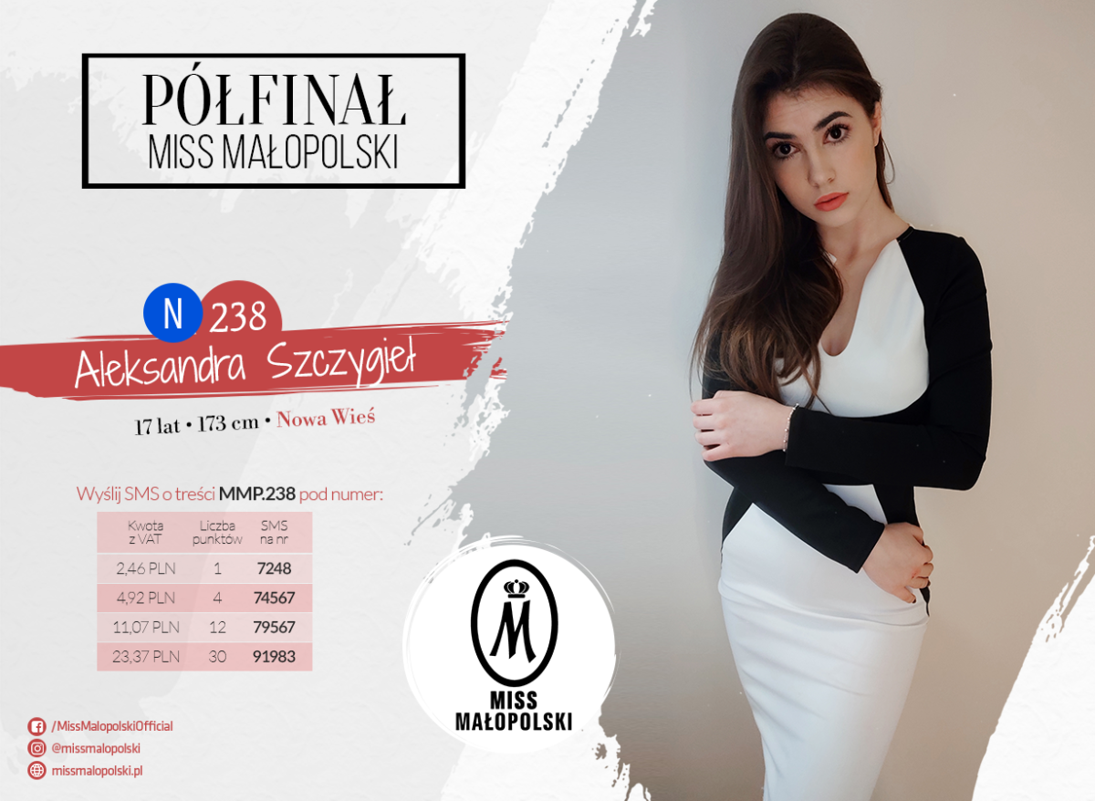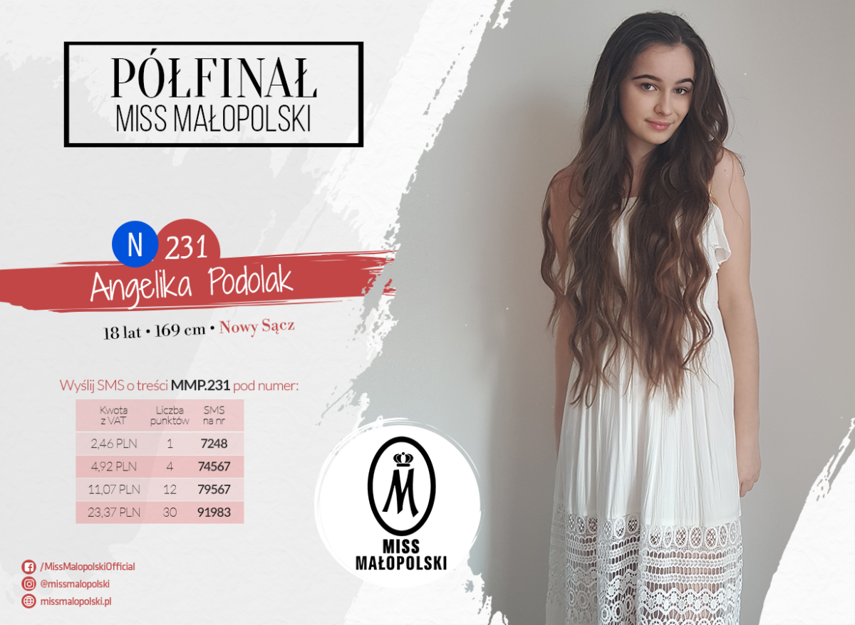 Poznaliśmy tegoroczne uczestniczki konkursu Miss i Miss Nastolatek Małopolski odbywającego się w ramach ogólnopolskiego narodowego konkursu piękności Miss Polski. Ponad 130 kandydatek z całego województwa zostało podzielone na dwie kategorie. O tytuł Miss Małopolski ubiega się 86 kandydatek z roczniak 1993-2001, natomiast o tytuł Miss Nastolatek Małopolski ubiegaj się 45 kandydatek z rocznika 2002-2006.