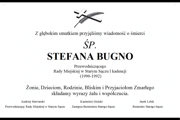 Zmarł Stefan Bugno. Przewodniczący Rady Miejskiej w pierwszych latach odrodzonego samorządu