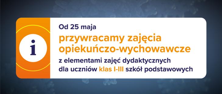 Jak informuje Ministerstwo Edukacji: Od poniedziałku, 18 maja br. uruchamiamy kolejne etapy stopniowego powrotu do stacjonarnego funkcjonowania szkół, wybranych placówek oświatowych, bezpośredniego prowadzenia zajęć specjalistycznych z dziećmi posiadającymi opinię o potrzebie wczesnego wspomagania rozwoju i uczniami posiadającymi orzeczenie. Przywracamy również możliwość prowadzenia wybranych zajęć praktycznych w szkolnictwie branżowym. W kolejnych tygodniach przywrócimy zajęcia w klasach […]