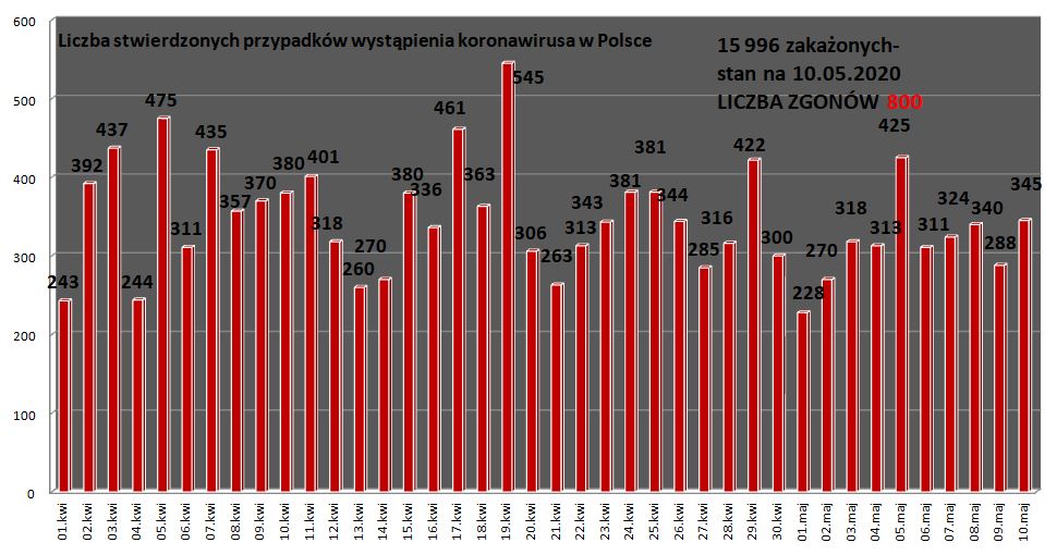 W niedzielę potwierdzono 345 nowych przypadków zakażenia koronawirusem i poinformowano o śmierci 15 osób. Liczba wszystkich odnotowanych przypadków wzrosła do 15 996. Od początku epidemii COVID-19 zmarło 800 osób – wynika z oficjalnych danych Ministerstwa Zdrowia. Liczba osób objętych kwarantanną to ponad 100 tysięcy. W niedzielę najwięcej nowych przypadków odnotowano w województwach: śląskim – 171 […]