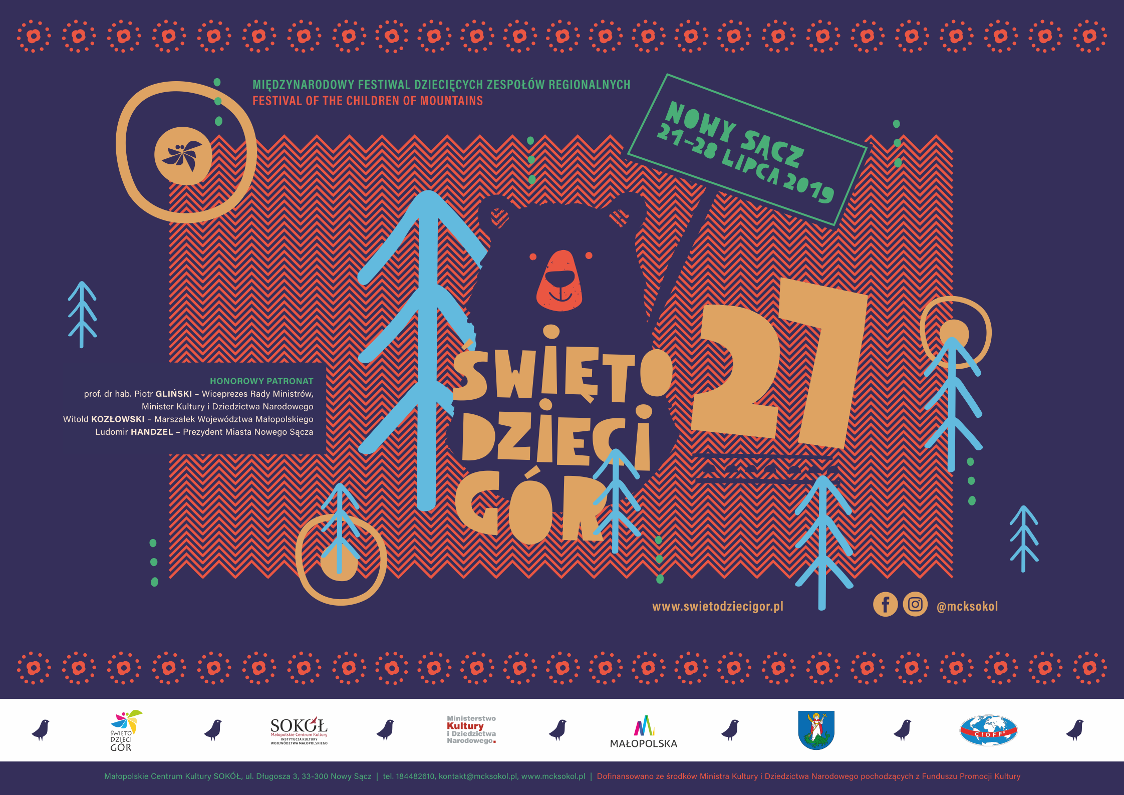27. Międzynarodowy Festiwal Dziecięcych Zespołów Regionalnych ŚWIĘTO DZIECI GÓR Nowy Sącz, 21-28 lipca 2019 Pod honorowym patronatem: Ministra Kultury i Dziedzictwa Narodowego, Marszałka Województwa Małopolskiego, Prezydenta Nowego Sącza Festiwal jest niezwykłym widowiskiem. Kolorowa parada ulicami miasta w dzień otwarcia Festiwalu zakończona koncertem inauguracyjnym wszystkich zespołów i pokazem ogni sztucznych na nowosądeckim Rynku każdego roku przyciąga […]