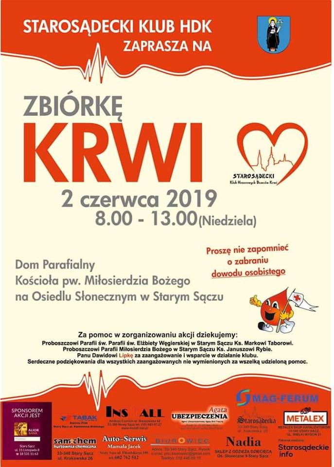 Już 2 czerwca (niedziela) Starosądecki Klub Honorowych Dawców Krwi PCK organizuje akcję oddawania krwi. W ten dzień każdy może podarować potrzebującym najcenniejszy prezent – kroplę życia. Aby oddać krew kandydat lub kandydatka musi spełniać ściśle określone warunki. Po pierwsze, ukończone 18 lat. Po drugie, dobry stan zdrowia i odpowiednia waga ciała. Całkowite przeciwwskazania mają osoby które chorowały na […]