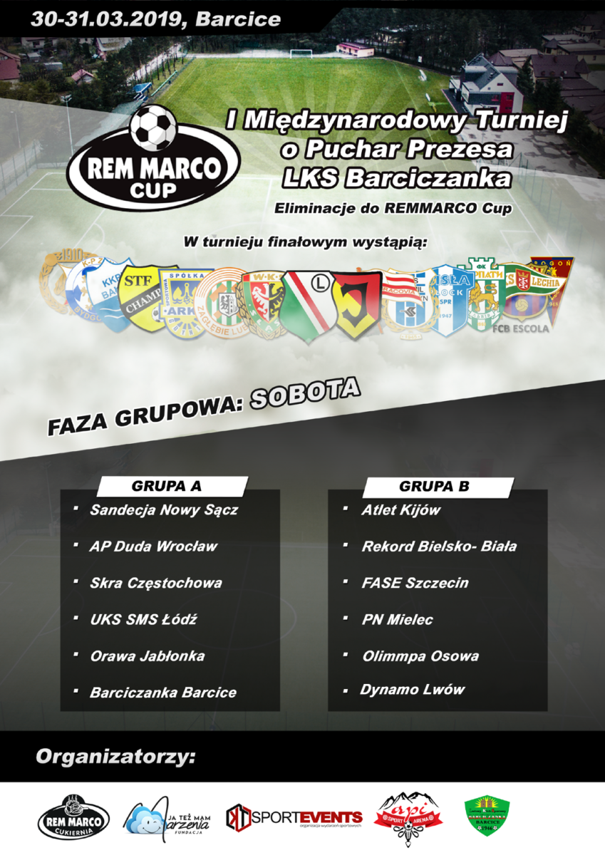 12 zespołów z Polski i Ukrainy powalczy o udział w prestiżowym turnieju Turniej Rem Marco Cup, który we wrześniu 2019 roku odbędzie się po raz pierwszy w Zakopanem. Już w sobotę od godziny 07:00 rano na stadionie w Barcicach odbędą się pierwsze mecze w I Turnieju o Puchar Prezesa LKS Barciczanka. Tym razem zagrają zawodnicy […]