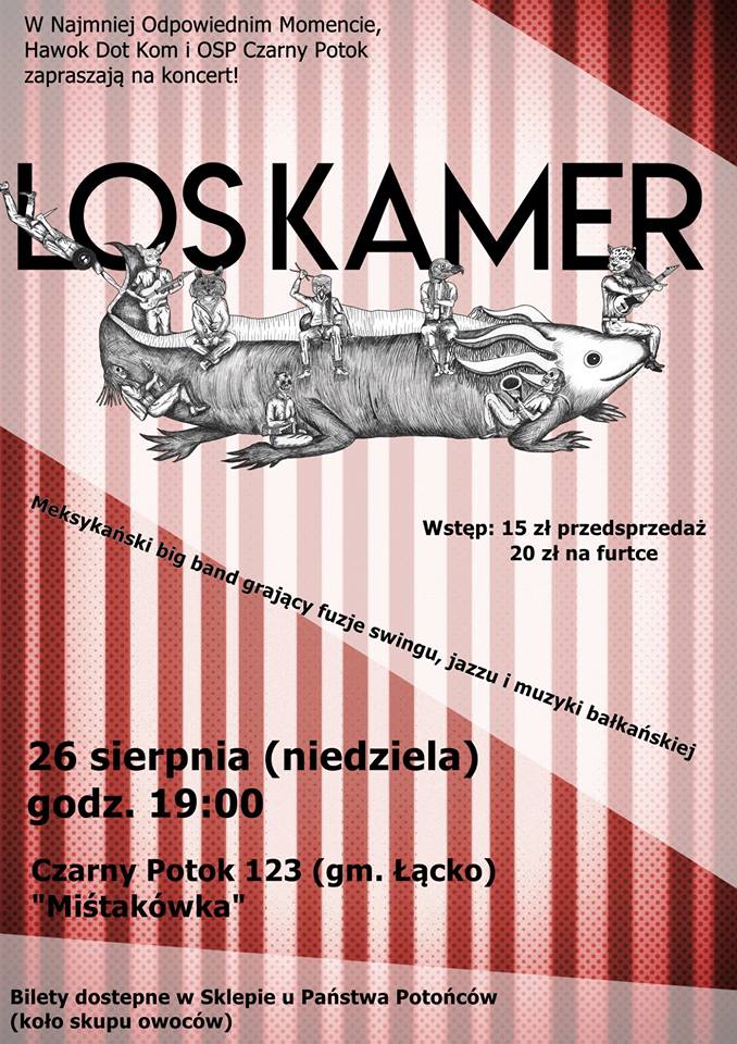 Powrót z hukiem! W zeszłym roku nikt nie spodziewał się takich emocji. Wieś obróciła się do góry nogami. Powtarzamy manewry! Los Kamer wraca do Czarnego Potoku. Obecność obowiązkowa 🙂 koncert Los Kamer (Swing, Jazz, Balkan) z Meksyku data: 26 sierpnia (niedziela), godz. 19:00 miejsce: Czarny Potok 123, Gmina Łącko bilety 15 pln w przedsprzedaży / […]
