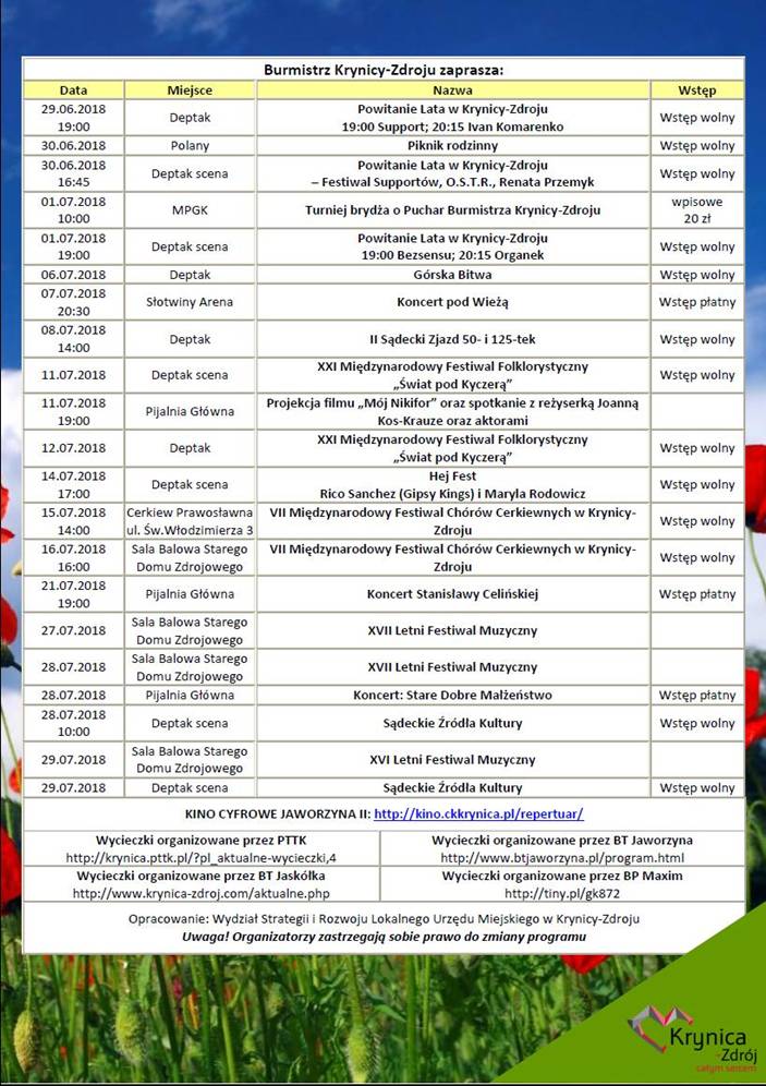 Najbliższe imprezy w Krynicy-Zdrój