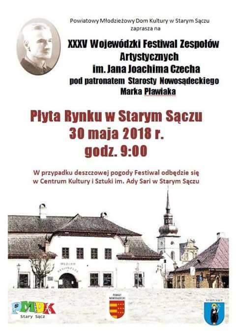 Już dzisiaj (30 maja) na Rynku w Starym Sączu odbędzie się XXXV Wojewódzki Festiwal Zespołów Artystycznych im. Jana Joachima Czecha. Zapraszamy całe rodziny na wspólną zabawę, a w ramach nadchodzącego Dnia Dziecka, każdy mały uczestnik otrzyma watę cukrową, nie zabraknie też innych atrakcji.