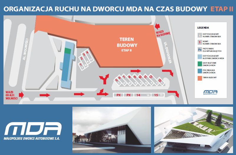 Rusza II etap remontu Dworca Autobusowego MDA w Nowym Sączu. 12 listopada (niedziela) od godziny 6:00 rano wejdzie w życie nowa organizacja ruchu i lokalizacja stanowisk odpraw na modernizowanym dworcu. W trakcie II etapu modernizacji odprawy autobusów odbywać się będą z tymczasowych stanowisk wyznaczonych na terenie nie objętym remontem: – przy budynku dworca (stanowiska 1 […]
