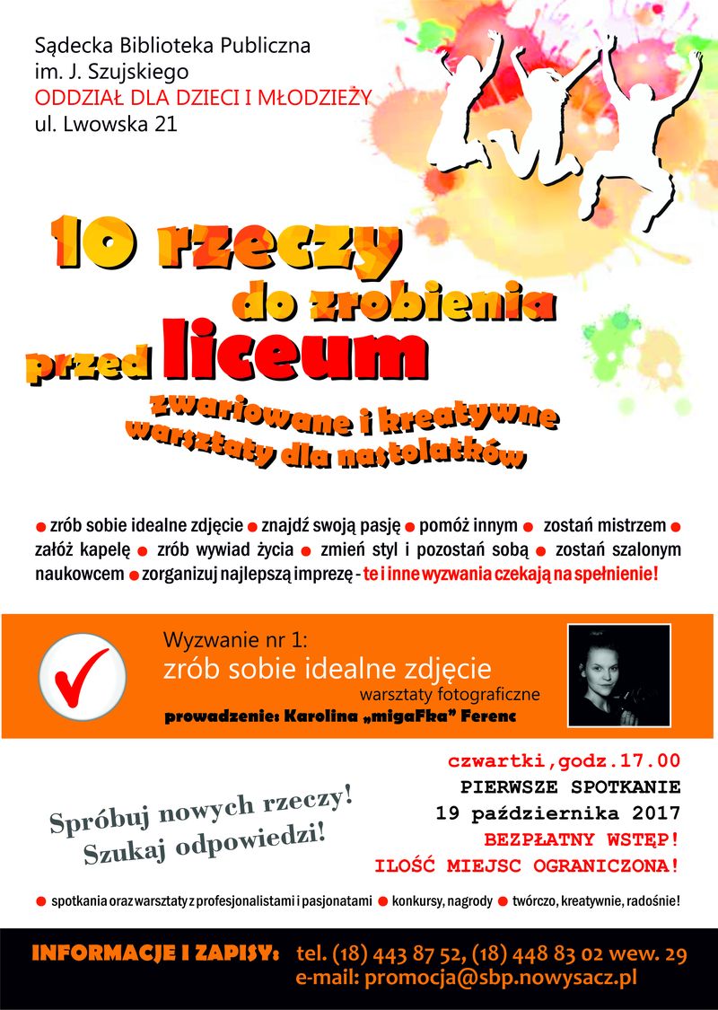 „10 rzeczy do zrobienia przed liceum – zwariowane i kreatywne warsztaty dla nastolatków” to cykl zajęć w Oddziale dla Dzieci i Młodzieży Sądeckiej Biblioteki Publicznej. Przedsięwzięcie organizowane jest z myślą o uczniach gimnazjów i starszych klas szkół podstawowych. Pierwsze zajęcia już w październiku. Organizatorzy chcą zachęcić młodych ludzi do odwiedzania placówki przy ul. Lwowskiej 21, […]