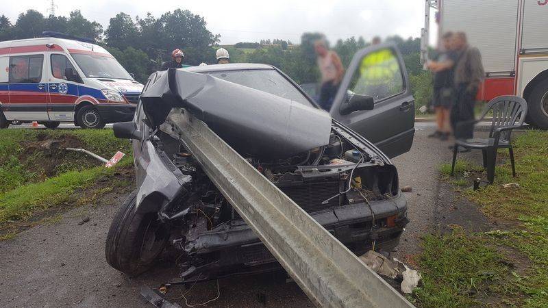 Paszyn. Bariera ochronna przebiła samochód na wylot