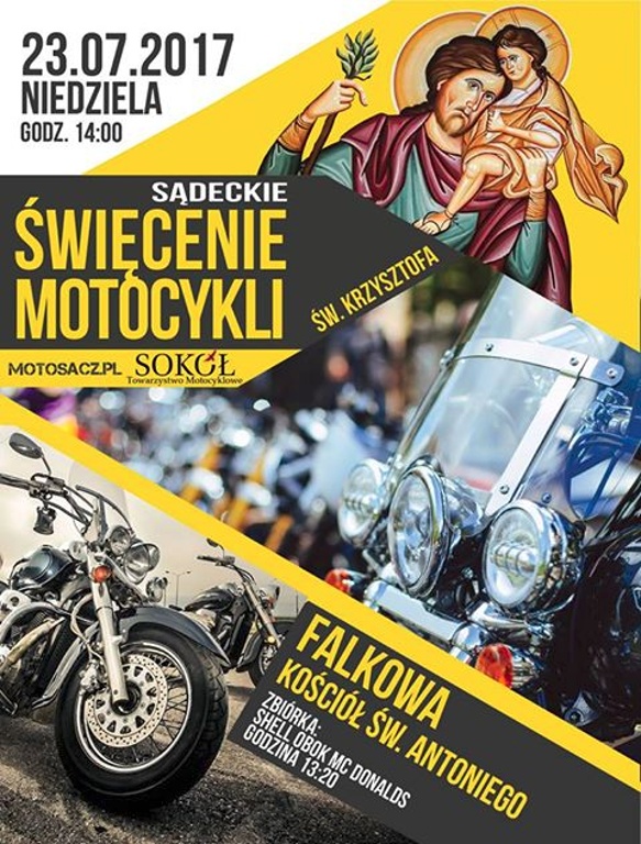 Sądeckie Forum Motocyklistów Motosacz.pl zaprasza na kolejne wydarzenia dla wielbicieli jednośladów. 23 lipca (niedziela) o godz. 14:00 w kościele na Falkowej odbędzie się msza święta i tradycyjne święcenie motocykli przy okazji imienin patrona wszystkich podróżujących – św. Krzysztofa. – Zapraszamy serdecznie do udziału wszystkich motocyklistów, nie tylko Krzysztofów, choć muszę przyznać, że w naszym gronie […]