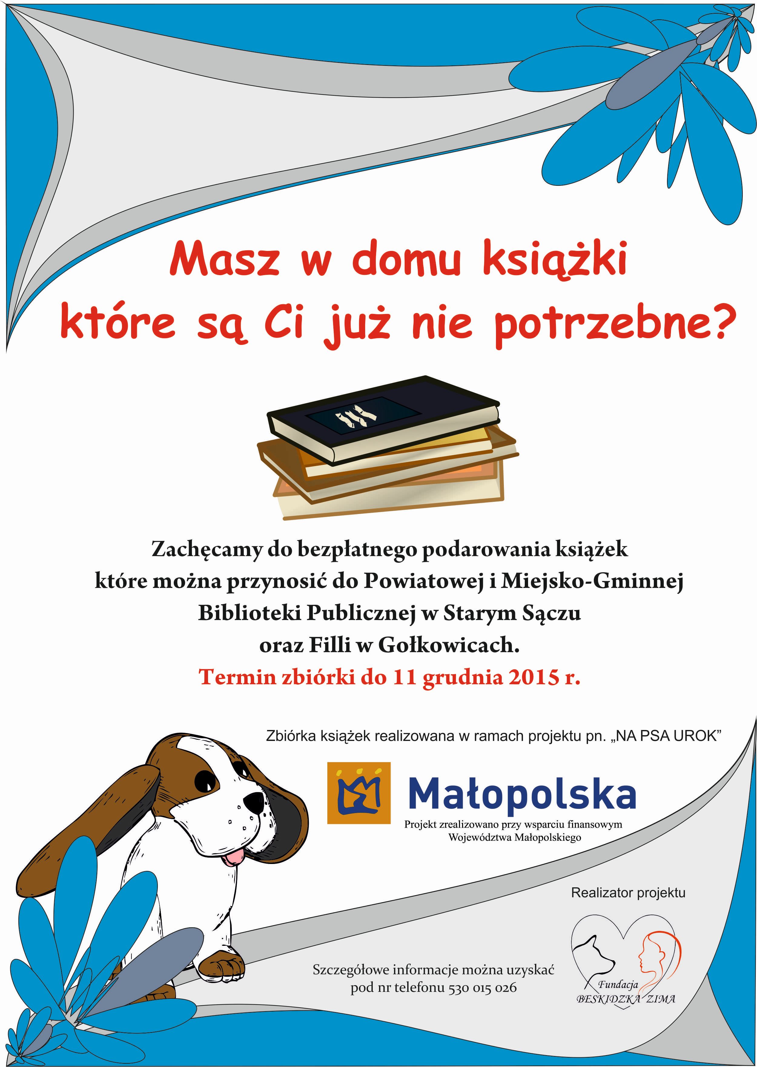 Fundacja Beskidzka Zima realizuje w powiecie nowosądeckim kolejny projekt NA PSA UROK. Tym razem spotkania odbywają się w Miejskiej Bibliotece w Starym Sączu oraz w jej filii w Gołkowicach. Projekt realizowany przy wsparciu finansowym Województwa Małopolskiego, a jego głównym celem jest promocja czytelnictwa wśród dzieci 6-12 lat. W ramach projektu odbywają się spotkania podczas których […]