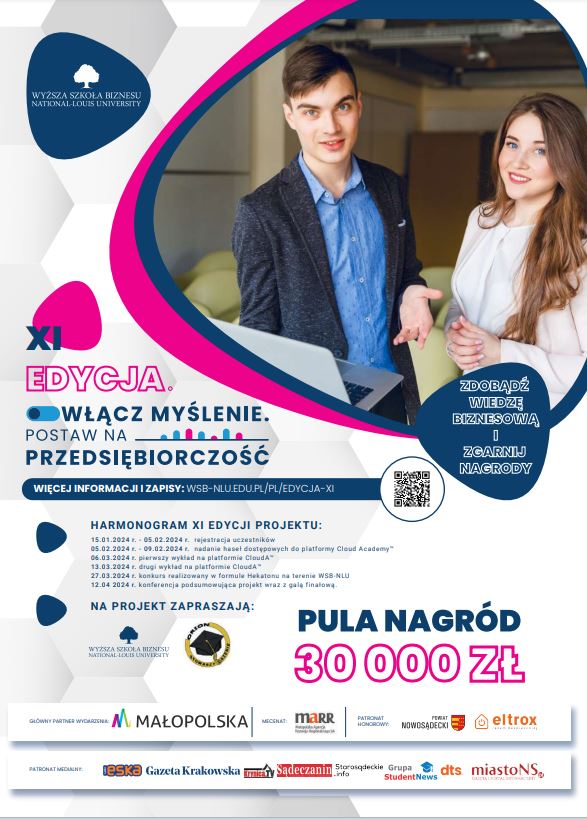 Już są ! Zapisy na XI edycję projektu „Włącz myślenie. Postaw na przedsiębiorczość” właśnie się rozpoczęły! Pula nagród to 30 000zł! Wyższa Szkoła Biznesu – National Louis University (WSB-NLU) w Nowym Sączu oraz Stowarzyszenie „ORION” zapowiedzieli rozpoczęcie zapisów na kolejną XI edycję projektu „Włącz myślenie. Postaw na przedsiębiorczość”. Kontynuując sukces poprzednich edycji, ta inicjatywa ponownie […]