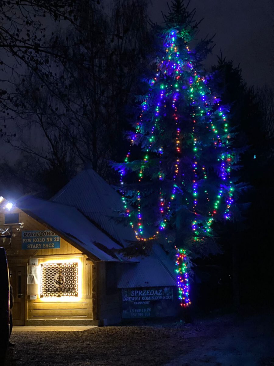Na starosądeckich stawach mamy największą choinkę w okolicy. Przez wędkarzy z Koła nr 20 PZW w Starym Sączu została udekorowana 1200 lampkami. Zapraszamy do spacerów po zmroku kiedy efekt jest najlepszy. Mamy nadzieję że umili okres świąteczny mieszkańcom gminy jak i odwiedzającym nas turystom.