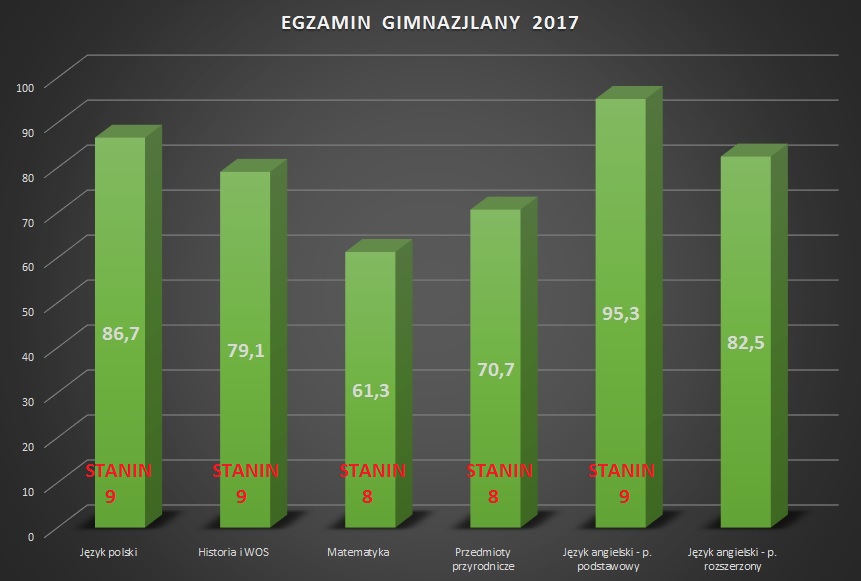 Gratulujemy wszystkim uczniom oraz nauczycielom, którzy wypracowali 8 i 9 stanin w tegorocznym egzaminie gimnazjalnym. Życzymy powodzenia w wymarzonych szkołach, do których właśnie uczniowie otwarli sobie drzwi. Poniżej prezentujemy uzyskanie wyniki. mat.sponsorowany