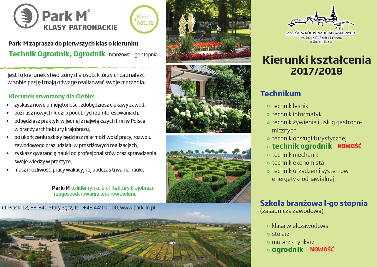 Park-M razem z Zespołem Szkół Ponadgimnazjalnych w Starym Sączu rusza z otwarciem klasy Patronackiej na kierunku kształcenia Technik Ogrodnik oraz Ogrodnik – szkoła branżowa I stopnia. Technik ogrodnik oraz Ogrodnik (szkoła branżowa I stopnia)– to dwa nowe kierunki w Zespole Szkół Ponadgimnazjalnych w Starym Sączu, w których uczniowie będą mogli się kształcić w szkołach prowadzonych […]
