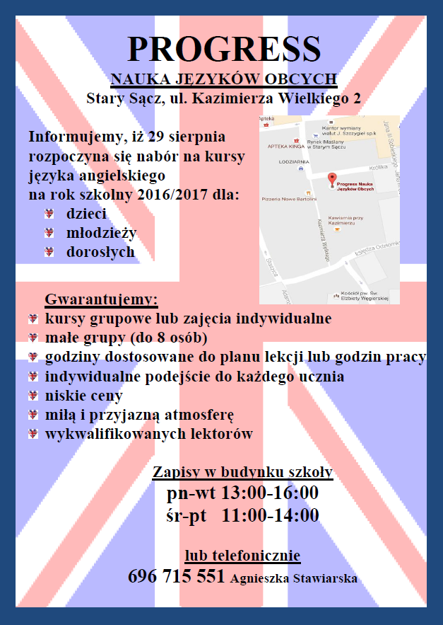 Szukasz dla swojego dziecka zajęć z języka angielskiego, na które będzie biegło zadowolone, wracało szczęśliwe, ale przede wszystkim takich, dzięki którym Twoje dziecko zrobi wyraźne postępy i polubi naukę tego języka? ANGLOSTACJA Szkoła języka angielskiego jest najlepszym wyborem! Zajęcia odbywają się w małych grupach (4-6 osób!) i miłej, „domowej” atmosferze, prowadzone są przez wykwalifikowanych lektorów, […]