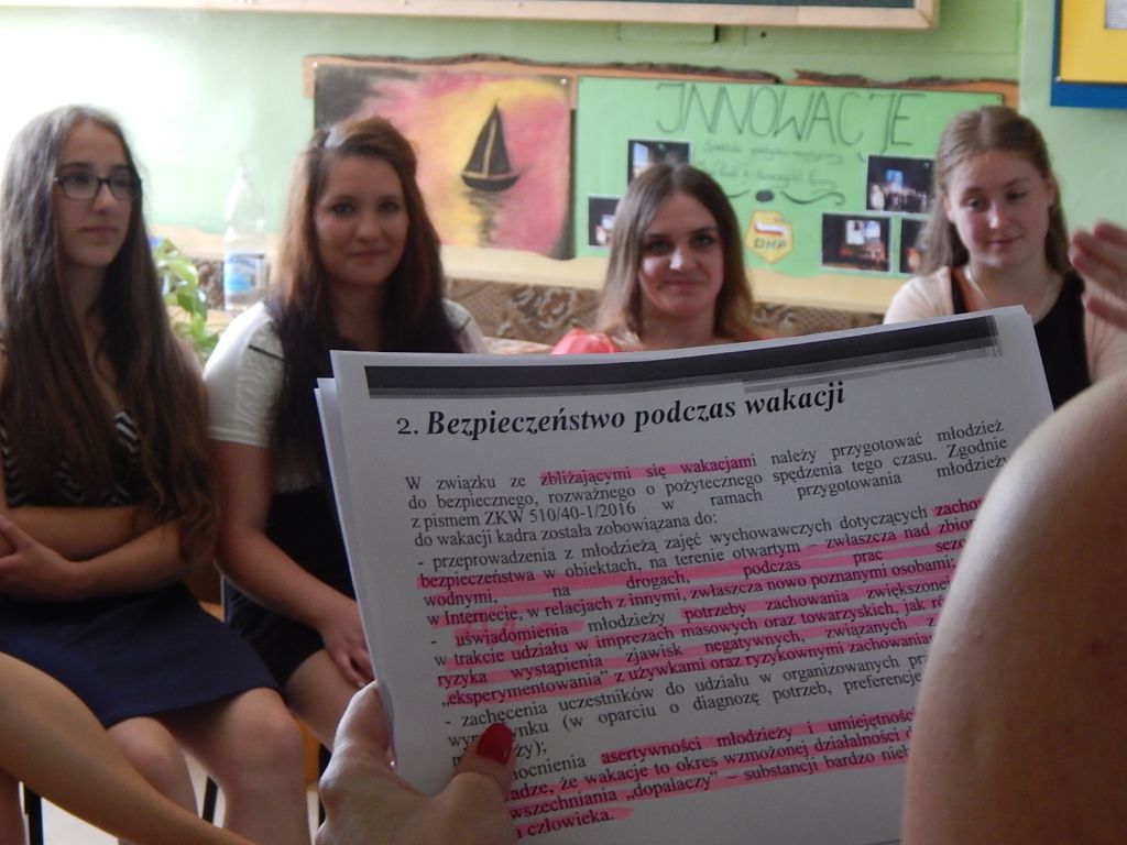 W dniu 24.06.2016 w starosądeckim hufcu odbyło się szkolenie dla uczestników dotyczące bezpieczeństwa młodzieży. Szkolenie zorganizowane zostało na polecenie Małopolskiej Wojewódzkiej Komendy OHP. Celem podjętych starań było zapoznanie uczestników hufca z tematyką dotyczącą bezpieczeństwa młodzieży oraz poszanowania i przestrzegania przysługujących jej praw. Szkolenie poprowadzone zostało przez Komendant hufca – Mariana Potoniec, wychowawców jednostki oraz kuratora […]
