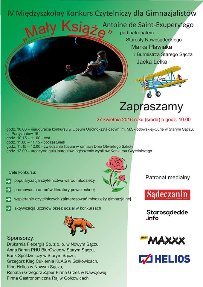 20 czerwca 2016 roku w starosądeckim kinie „Sokół” odbyło się podsumowanie drugiego etapu pierwszej edycji projektu czytelniczego „Po angielsku…czytać każdy może”, który został zrealizowany w Gimnazjum im. Juliusza Słowackiego w Starym Sączu w roku szkolnym 2015/2016. Wielkiemu finałowi konkursu towarzyszyła adaptacja sceniczna „Poskromienia złośnicy” Williama Szekspira w języku angielskim w wykonaniu uczniów z klasy 2a i […]