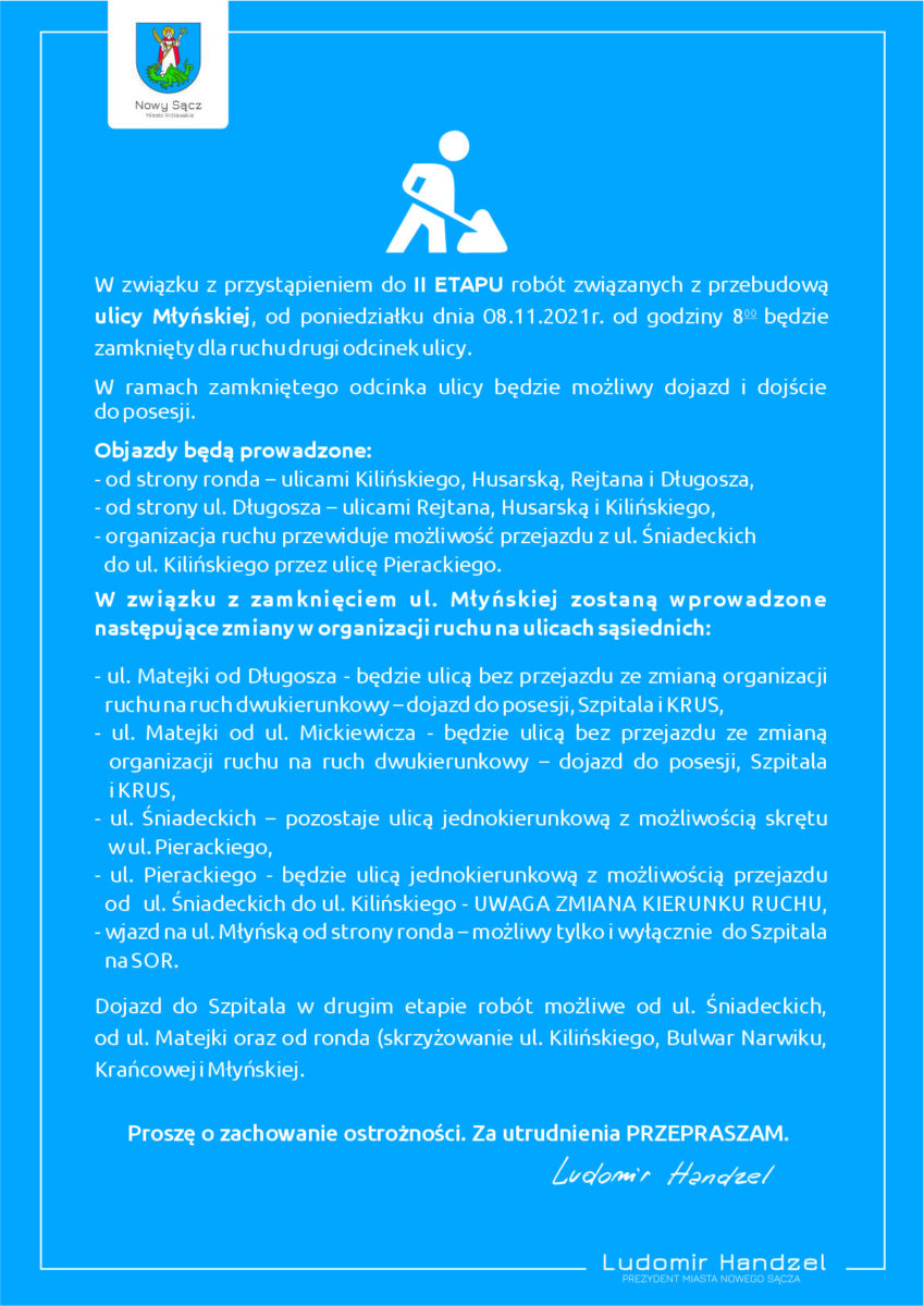 II etap remontu ul. Młyńskiej – zamknięcie odcinka drogi