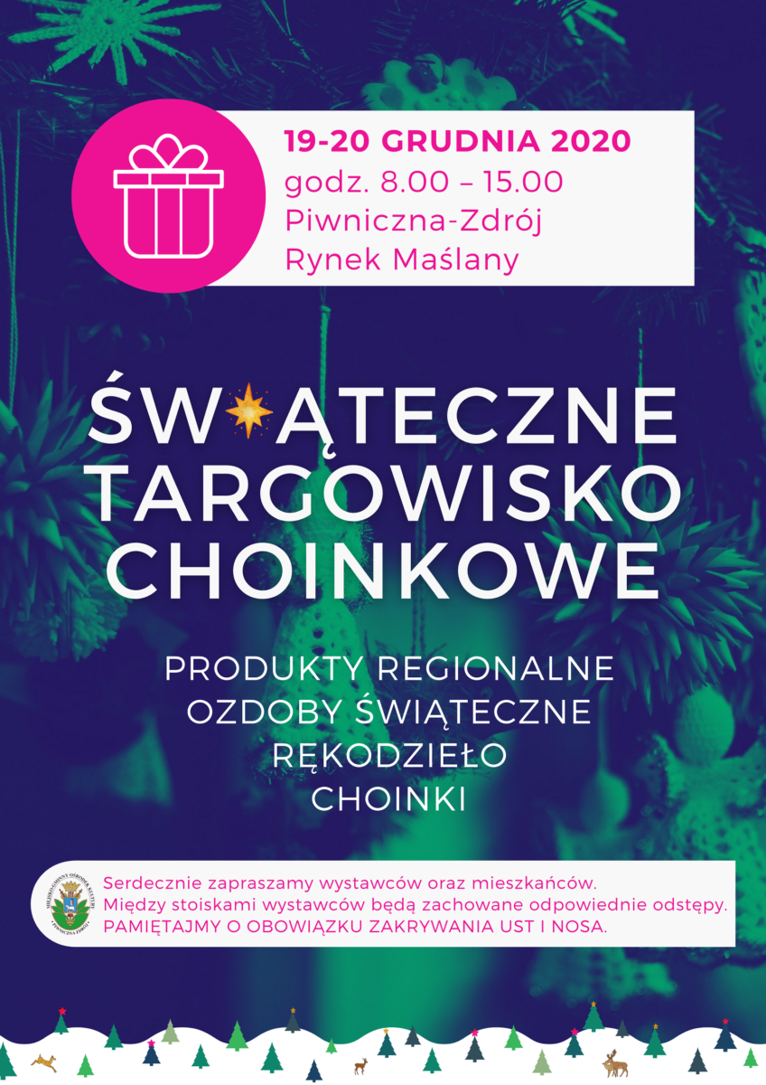 W dniach 19-20 grudnia w godz. od 8.00 do 15.00 na Rynku Maślanym w Piwnicznej-Zdroju otwarte będzie Świąteczne Targowisko Choinkowe. Serdecznie zapraszamy wystawców oraz mieszkańców, pamiętajmy o obowiązku zakrycia twarzy i ust. Między stoiskami wystawców będą zachowane odpowiednie odstępy. Zainteresowani wystawieniem swoich stoisk mogą kontaktować się z Miejsko-Gminnym Ośrodkiem Kultury pod tel. 18 44 64 157. […]