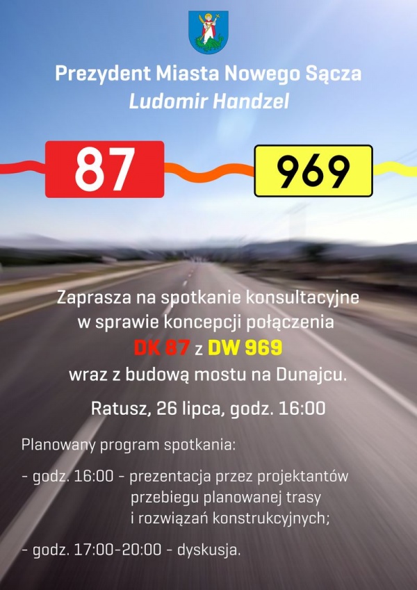 Prezydent Ludomir Handzel zaprasza na spotkanie konsultacyjne w sprawie koncepcji połączenia drogi krajowej nr 87 z drogą wojewódzką nr 969 wraz z budową mostu na Dunajcu. Spotkanie odbędzie się w ratuszu 26 lipca o godz. 16:00. Spotkanie jest efektem zainteresowania i licznych pytań mieszkańców Nowego Sącza, dotyczących wymienionego zagadnienia. Przypomnijmy, że 27 lipca 2018 r. […]