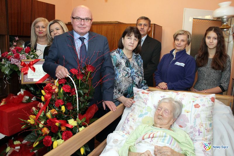 Życzenia zdrowia i wszelkiej pomyślności, a także listy gratulacyjne od Prezesa Rady Ministrów oraz Wojewody Małopolskiego, obchodzącej setne urodziny Leokadii Bąk przekazał prezydent Nowego Sącza Ryszard Nowak. Podczas wizyty u Jubilatki najlepsze życzenia złożyli również wicedyrektor nowosądeckiego oddziału Zakładu Ubezpieczeń Społecznych Agata Michalik oraz kierownik Urzędu Stanu Cywilnego Małgorzata Antkiewicz-Wójs. Leokadia Bąk pochodzi z Kraśnika Lubelskiego, […]