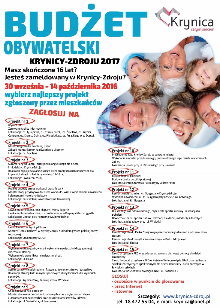 Po raz pierwszy mieszkańcy Krynicy-Zdroju mają możliwość partycypowania w wydatkowaniu puli pieniędzy z budżetu Gminy przeznaczonej na budżet obywatelski. Od 30 września br. trwa głosowanie na zadania zgłoszone w ramach I edycji budżetu obywatelskiego Krynicy-Zdroju. Mieszkańcy mogą głosować na jeden dowolny projekt spośród 15 zakwalifikowanych do głosowania. Wśród pomysłów zgłoszonych przez mieszkańców znalazły się m.in. projekty […]