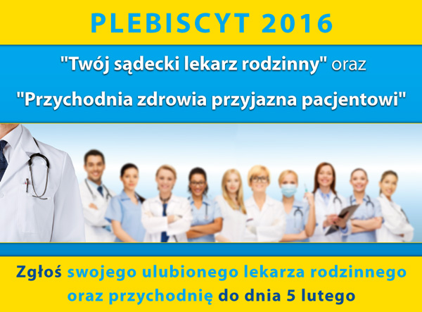 Fundacja Sądecka i portal Sądeczanin.info zapraszają do udziału w plebiscycie Twój sądecki lekarz rodzinny, Przychodnia zdrowia przyjazna pacjentowi Plebiscyt odbywać się będzie w dwóch kategoriach: „Twój sądecki lekarz rodzinny” i „Przychodnia zdrowia przyjazna pacjentowi”. Plebiscyt obejmuje swoim zasięgiem miasto Nowy Sącz oraz powiat nowosądecki. Na zgłoszenia kandydatur czekamy do 5 lutego 2016 r. Kandydatury można przesłać […]
