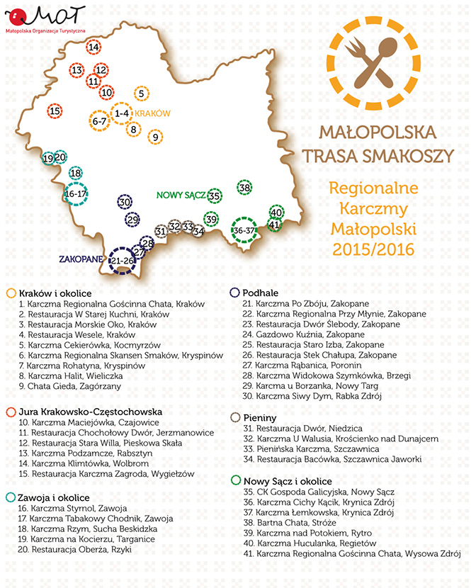Małopolska Organizacja Turystyczna zaprasza na wędrówkę po certyfikowanych karczmach reprezentujących różne zakątki regionu, style i specjalności lokalne. Zanim jednak zanurzycie łyżkę w misce strawy i podniesiecie ją do ust, zadumajcie się nad przeszłością, wsłuchajcie się w niegdysiejszy gwar, skrzypienie kół na gościńcu, brzęk miedzianych garnców. Pomyślcie o tych, którzy przed laty biesiadowali w małopolskich karczmach […]