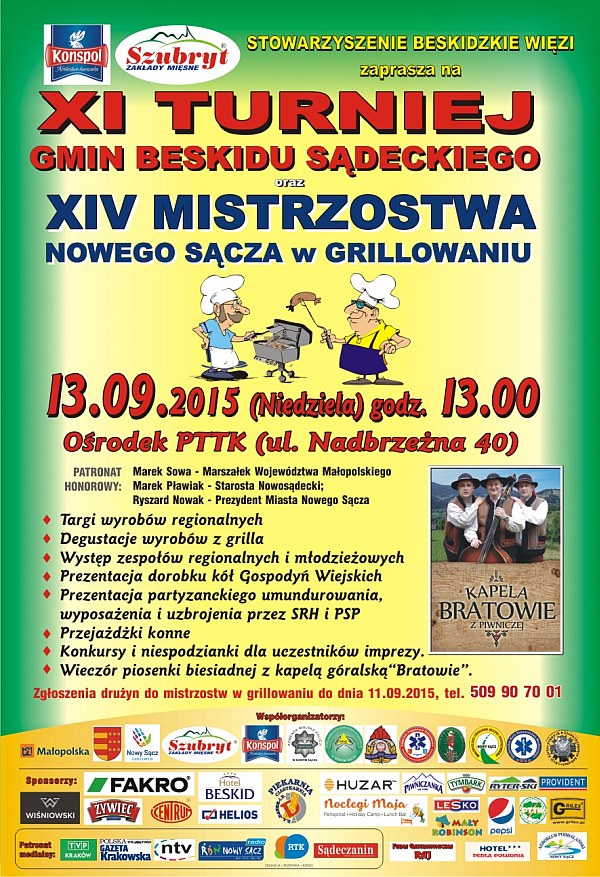 Pod patronatem prezydenta Ryszarda Nowaka 13 września odbędą się XIV Mistrzostwa Nowego Sącza w Grillowaniu. Mistrzostwa, których organizatorem jest Stowarzyszenie Beskidzkie Więzi zorganizowane zostaną na obiektach Ośrodka PTTK, przy ul. Nadbrzeżnej. W programie: targi wyrobów regionalnych, degustacje, występy zespołów, prezentacje dorobku kół gospodyń wiejskich, partyzanckiego umundurowania, przejażdżki konne oraz konkursy i niespodzianki. Zgłoszenia drużyn zainteresowanych […]