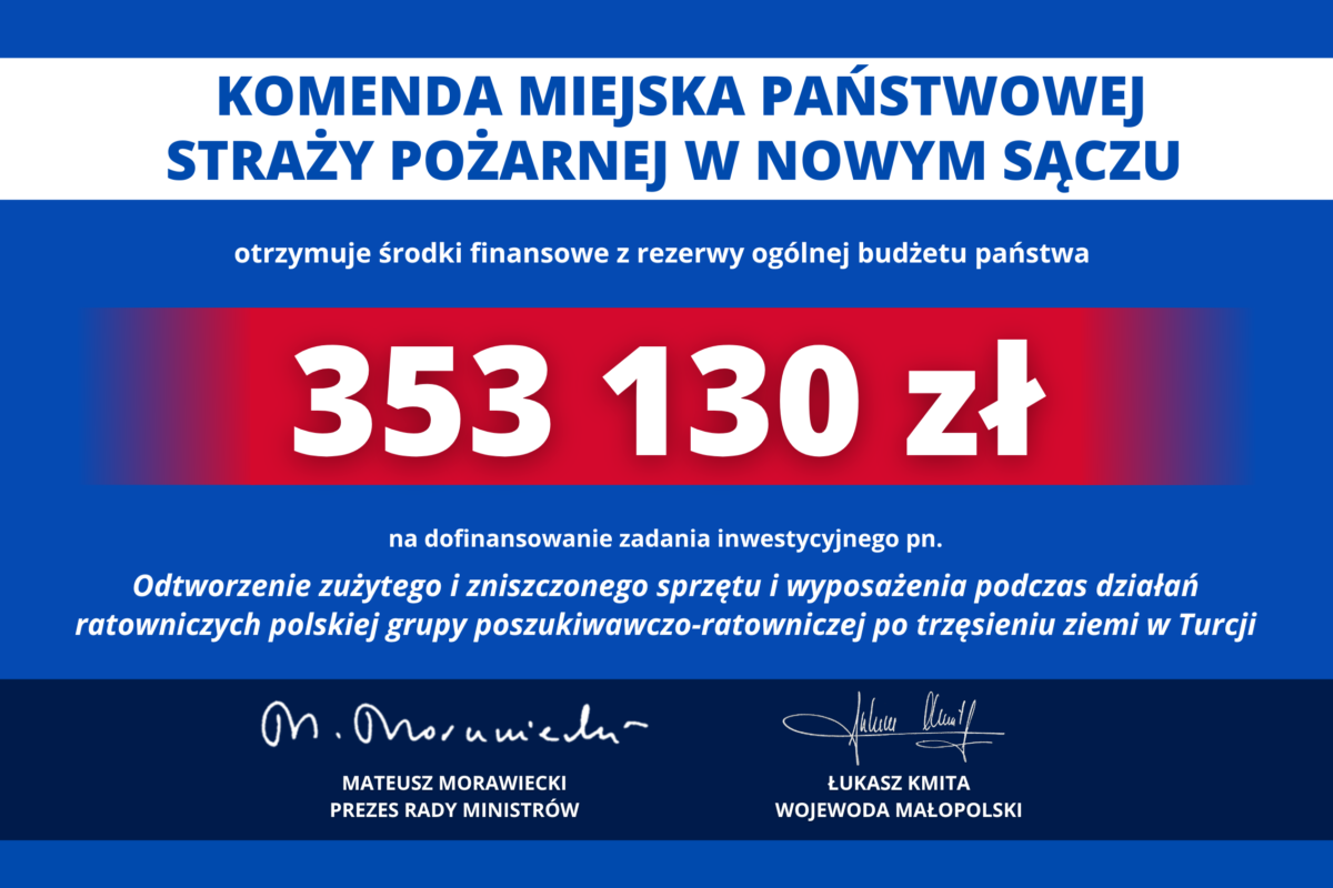 Rządowe wsparcie dla Specjalistycznej Grupy Poszukiwawczo-Ratowniczej z Nowego Sącza
