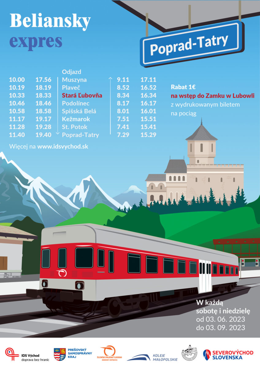 Popularne połączenie kolejowe Poprad-Tatry – Stara Lubownia – Muszyna kursuje w każdy weekend do 3 września. Beliansky Express wprowadza w tym sezonie letnim nową atrakcję. Pasażerowie, którzy kupią bilet na ten pociąg, otrzymają 1 euro zniżki na zwiedzanie Zamku Lubownia i skansenu. Nowość dla pasażerów przygotował Kraj Preszowski oraz IDS Východ we współpracy z Muzeum […]