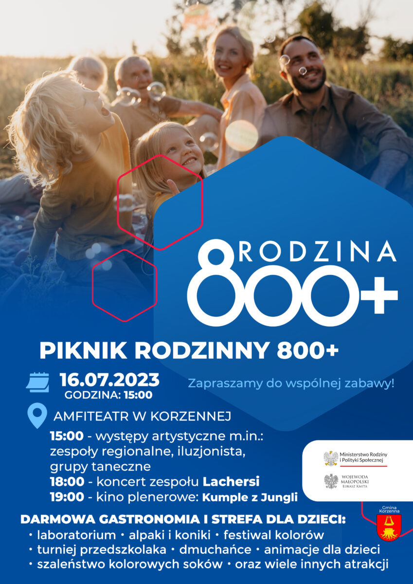 Muzyka, taniec, kino, darmowa gastronomia i strefa dla dzieci – to wszystko już w najbliższą niedzielę (16 lipca) podczas „Pikniku rodzinnego 800+”, który odbędzie się w amfiteatrze w Korzennej. Serdecznie zapraszamy! – Będą zespoły regionalne, grupy taneczne, ale też występ iluzjonisty. Na scenie pojawi się grupa Lachersi – rodowici mieszkańcy ziemi sądeckiej, grający tradycyjne melodie […]