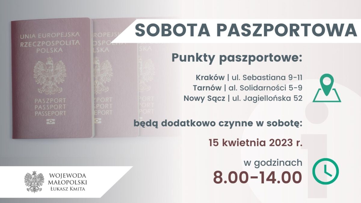 – Wychodząc naprzeciw potrzebom Małopolan, organizujemy kolejną już w tym roku „Sobotę paszportową”. W najbliższą sobotę, tj. 15 kwietnia, znów będzie możliwość złożenia wniosku o paszport lub odebrania gotowego paszportu. Serdecznie zapraszamy! – mówi wojewoda małopolski Łukasz Kmita. W sobotę 15 kwietnia Oddziały Paszportowe w Krakowie przy ul. św. Sebastiana, w delegaturze Małopolskiego Urzędu Wojewódzkiego w […]
