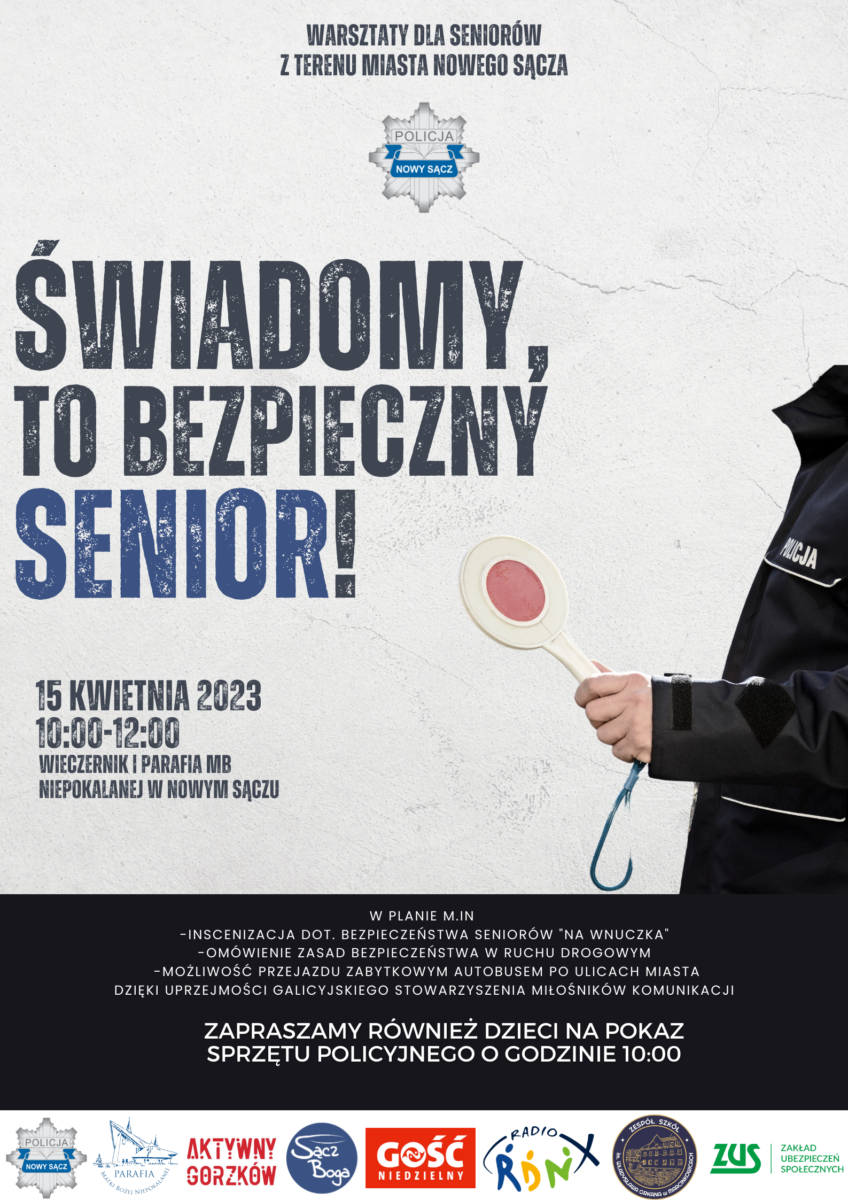 15 kwietnia br. w godzinach 10:00-12:00 w Parafii Matki Bożej Niepokalanej w Nowym Sączu odbędą się kolejne warsztaty profilaktyczno-edukacyjne dla seniorów pod hasłem „Świadomy, to bezpieczny senior”. Organizatorem wydarzenia jest Komenda Miejska Policji w Nowym Sączu. Prelekcje dla seniorów przygotowali funkcjonariusze Wydziału Prewencji oraz Wydziału Ruchu Drogowego, a także przedstawiciele Zakładu Ubezpieczeń Społecznych oraz Narodowego […]