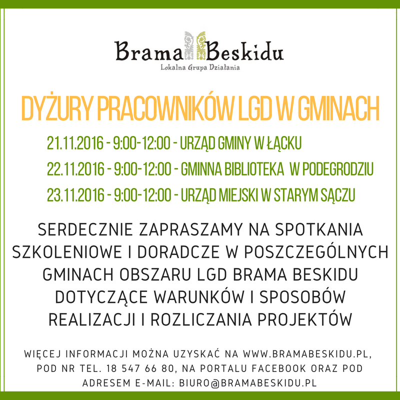 Zapraszamy na spotkanie konsultacyjne 6 grudnia (wtorek) w Urzędzie Miejskim w Starym Sączu (sala obrad) w godz. od 11:00 do 13:30. Urząd Marszałkowski Województwa Małopolskiego i Urząd Miejski w Starym Sączu zapraszają mieszkańców Gminy Stary Sącz na indywidualne konsultacje z tematyki pozyskiwania środków z funduszy europejskich. Konsultacje odbędą się we wtorek 6 grudnia 2016 r. […]