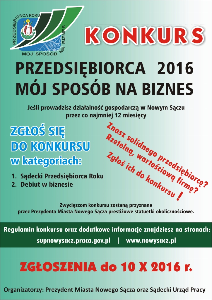 Znasz kogoś, kto prowadzi firmę o ciekawym profilu, jest solidny, rzetelny i wiarygodny? Lub kogoś, dla kogo prowadzenie firmy jest równocześnie jego pasją? A może sam prowadzisz działalność na terenie Nowego Sącza, a Twój biznes nieustannie się rozwija? Nie czekaj! Już teraz zgłoś się do konkursu „Mój Sposób na Biznes” i zyskaj miano przedsiębiorcy roku […]
