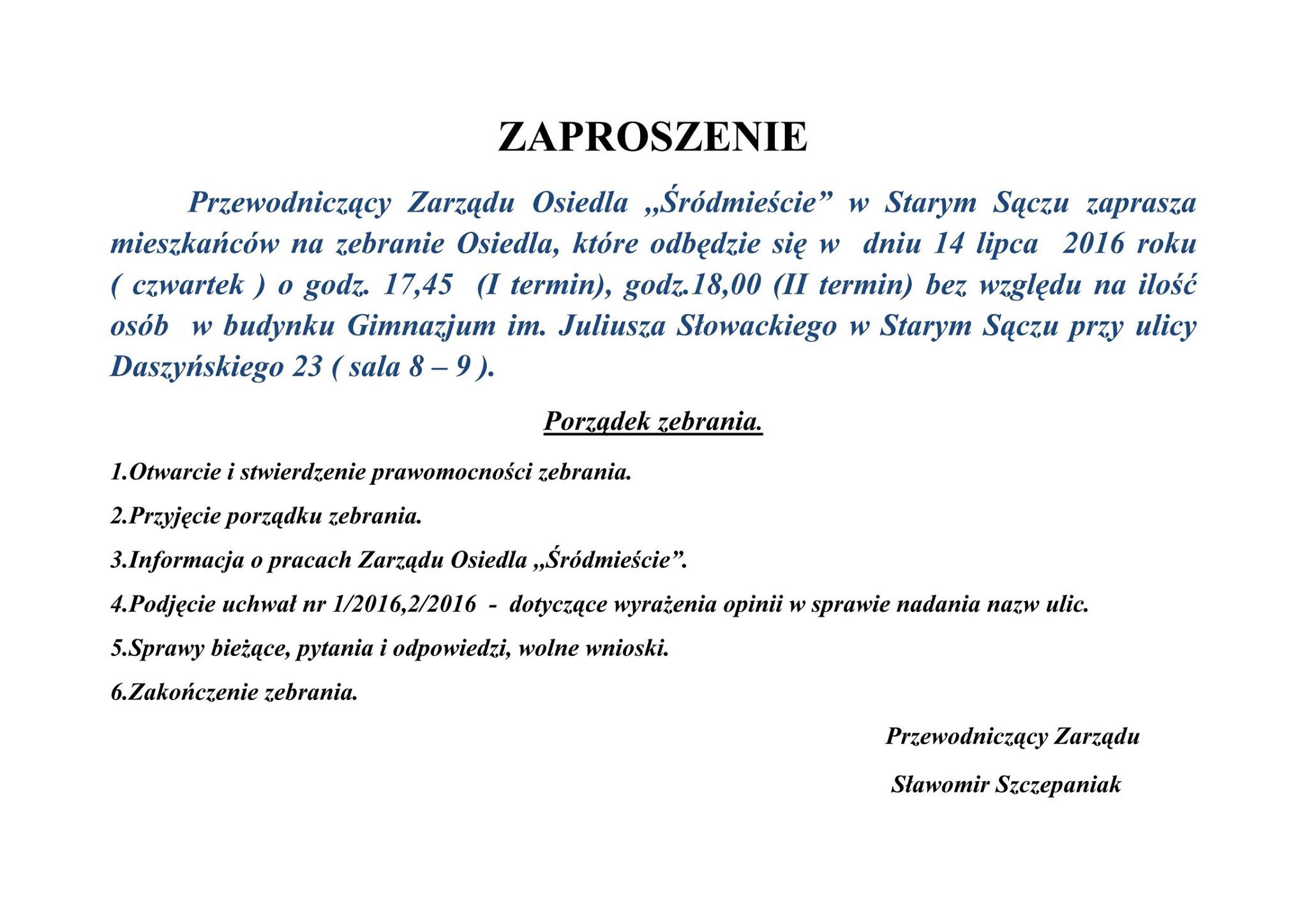 Nieobecni nie mają racji! Sprawdziło się to doskonale podczas czwartkowego (14 lipca) zebrania mieszkańców Osiedla Śródmieście, gdzie głównym tematem było nadanie nowych nazw ulic w Starym Sączu. Garstka uczestników zebrania jednogłośnie uchwaliła co następuje… Wielki Wygon stał się oficjalnie ulicą Wielki Wygon a nowo powstała droga (obecnie w planach) od Wielkiego Wygonu (za panem Maciuszkiem) do obwodnicy Starego […]