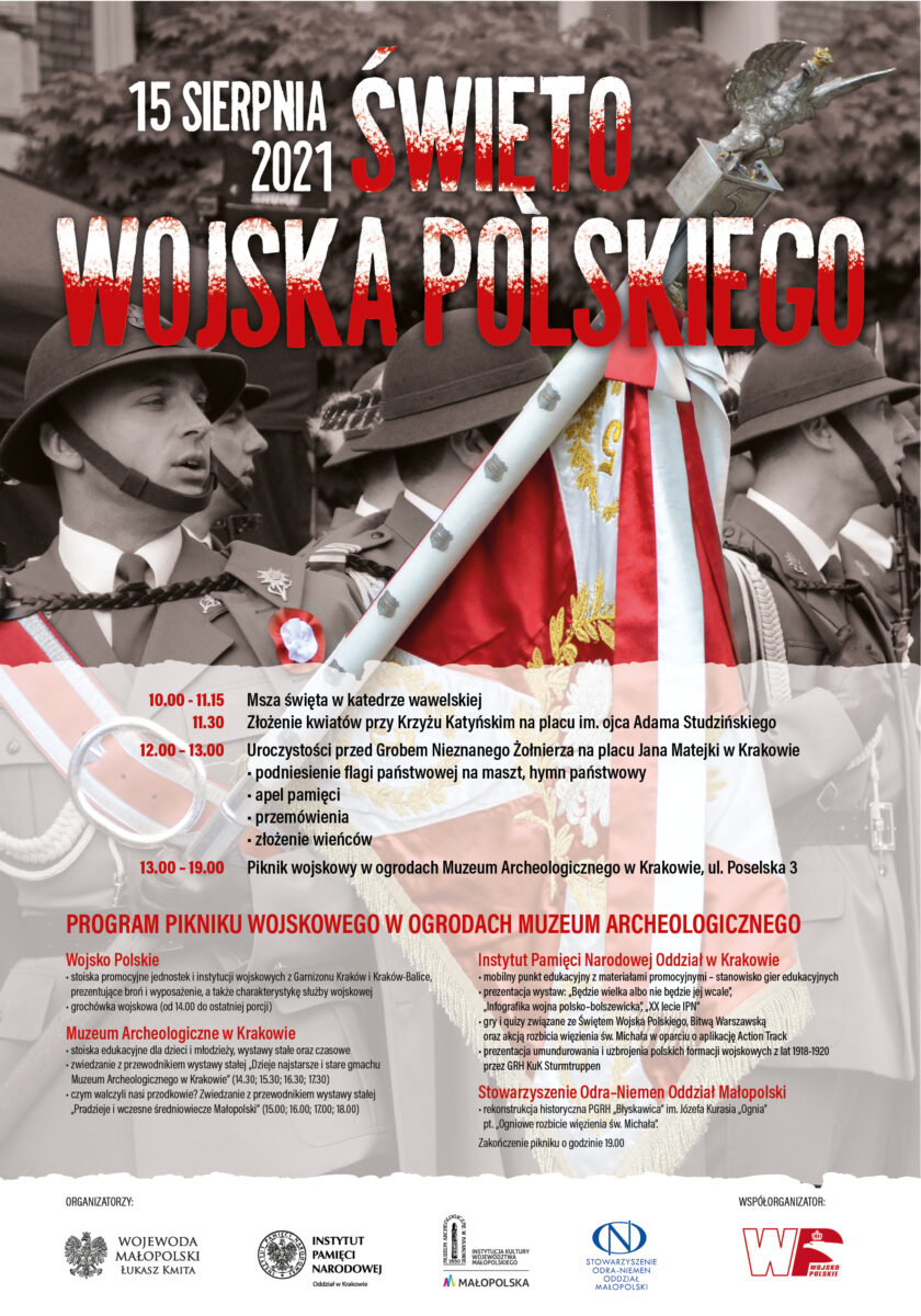 15 sierpnia obchodzimy Święto Wojska Polskiego. Wojewoda małopolski Łukasz Kmita, we współpracy z Instytutem Pamięci Narodowej – Oddziałem w Krakowie, Muzeum Archeologicznym w Krakowie, Stowarzyszeniem Odra Niemen – Oddziałem Małopolskim oraz Wojskiem Polskim, przygotował szereg wydarzeń związanych z tym szczególnym świętem. – Jesteśmy dumni z naszego Wojska. Jesteśmy dumni z naszej historii. To nasi żołnierze […]