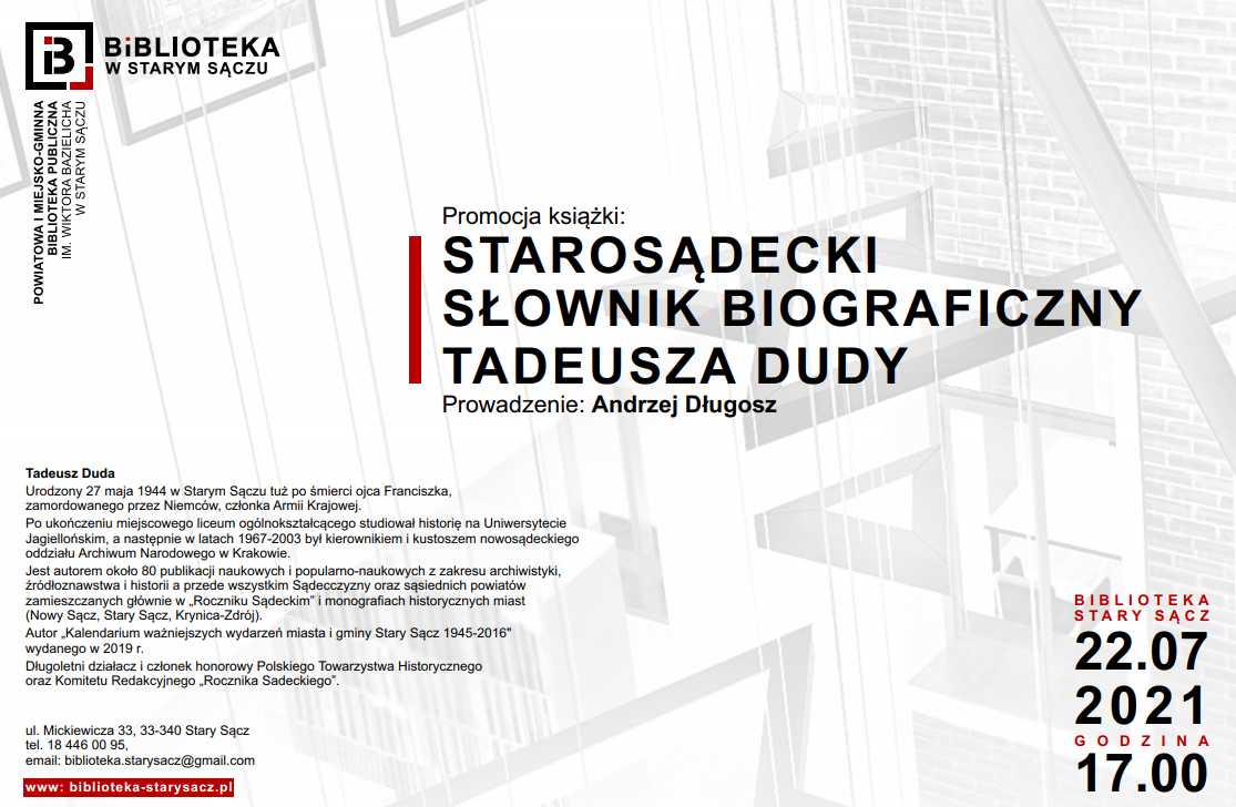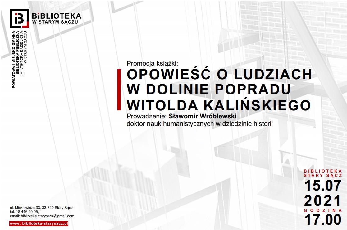 Zapraszamy na promocję książki Witold Kalińskiego. Biblioteka w Starym Sączu, 15 lipca 2021 godz. 17.00. Prowadzenie Sławomir Wróblewski.