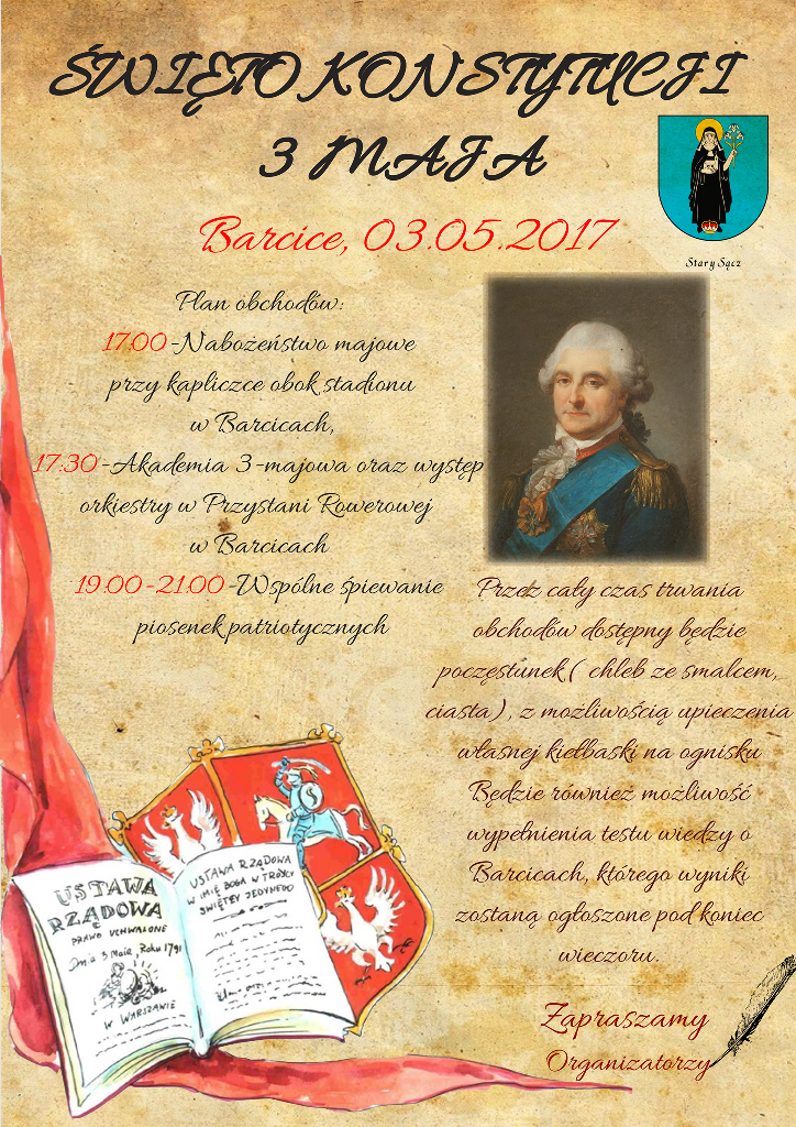 Harcerze i harcerki serdecznie zapraszają wszystkich mieszkańców Gminy Stary Sącz na „Wieczorek patriotyczny”. Uroczystość odbędzie się 3 maja o godzinie 17:00 majówką przy kapliczce obok stadionu w Barcicach. Na główną część „wieczorku patriotycznego” zapraszamy do barcickiej Przystani Rowerowej. Tam odbędzie się część artystyczna, występ orkiestry oraz wspólne śpiewanie piosenek patriotycznych przy ognisku. Na miejscu będzie […]