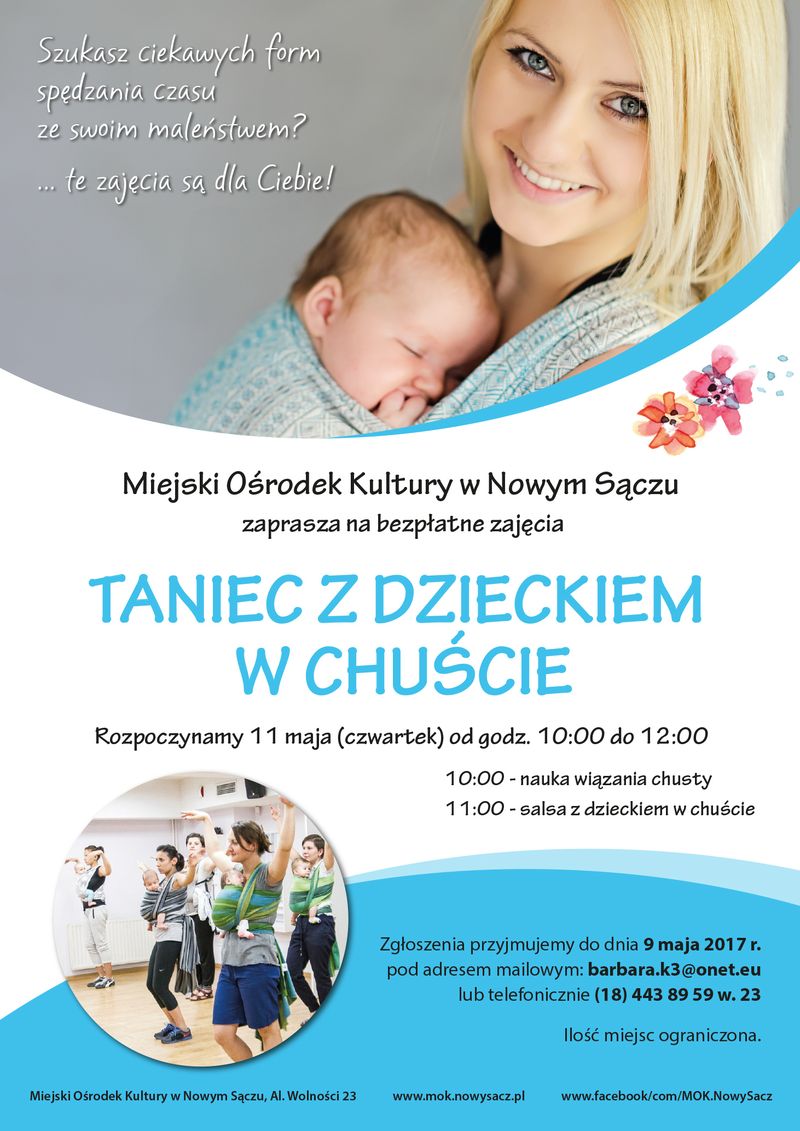 Do Miejskiego Ośrodka Kultury w Nowym Sączu wracają zajęcia pod nazwą „taniec z dzieckiem w chuście”. To ciekawa inicjatywa adresowana do mam i ich małych skarbów. Zgłoszenia do 9 maja. Zawijanie dziecka w chustę cieszy się wśród mam coraz większą popularnością. Pozwala nie tylko wyjść do sklepu, ugotować obiad czy wykonać inne domowe czynności bez […]