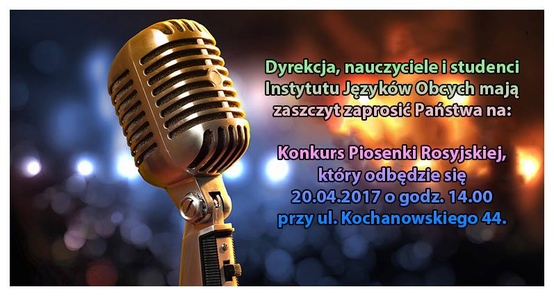 Serdecznie zapraszamy 20 kwietnia do Instytutu Języków Obcych PWSZ w Nowym Sączu na Festiwal Piosenki Rosyjskiej. Pierwszą edycję konkursu, który przeniesie was w bajkowy świat rosyjskiej muzyki. Gościem specjalnym będzie Violka Marcinkiewicz, która zaśpiewa specjalnie dla Was kilka piosenek. Organizatorzy przygotowali także niespodziankę dla widowni. Imprezę poprowadzi niezawodny Marcin Piwowar, absolwent IJO, znany i lubiany DJ Martin […]