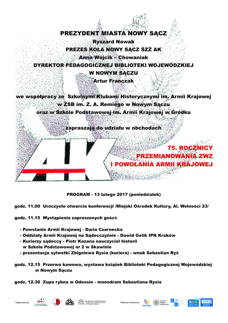 W poniedziałek 13 lutego przypada 75. rocznica przemianowania Związku Walki Zbrojnej i powołania Armii Krajowej. Z tej okazji w Miejskim Ośrodku Kultury odbędzie się konferencja poświęcona temu wydarzeniu. Wśród zapraszających na spotkanie jest prezydent Nowego Sącza Ryszard Nowak. Powstanie Armii Krajowej przybliży gość konferencji, Daria Czarnecka, socjolog i historyk. Czarnecka jest laureatką Konkursu im. Władysława […]