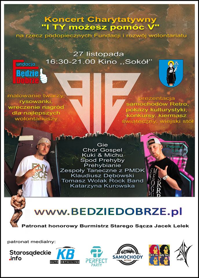 Zachęcamy wszystkich do udziału w corocznym koncercie fundacji „Będzie Dobrze”. Oprócz występów takich zespołów jak Prehybianie, Spod Prehyby, Tomasz Wolak Band i Kuki&Michu, będzie można posłuchać chóru Gospel, Gie, Kasi Kurowskiej, obejrzeć tańce zespołów z PMDK oraz pokazy kulturysty Klaudiusza Dębowskiego.To tylko część z atrakcji przygotowana przez starosądecką Fundację. 27 listopada od 16. 30 będzie […]