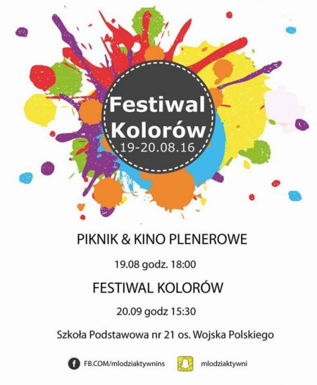Żyj kolorowo! Takie jest, najogólniej mówiąc, przesłanie Festiwalu Kolorów. To pełne nieskrępowanej radości święto odbędzie się w najbliższy piątek i sobotę w naszym mieście. Podczas Festiwalu zaplanowany jest piknik, projekcja filmu, gry, zabawy, turniej koszykówki i wiele innych atrakcji. Punktem kulminacyjnym będzie wyrzut proszków holi. Organizatorzy przygotowali proszek w 9 kolorach, żeby każdy mógł znaleźć […]
